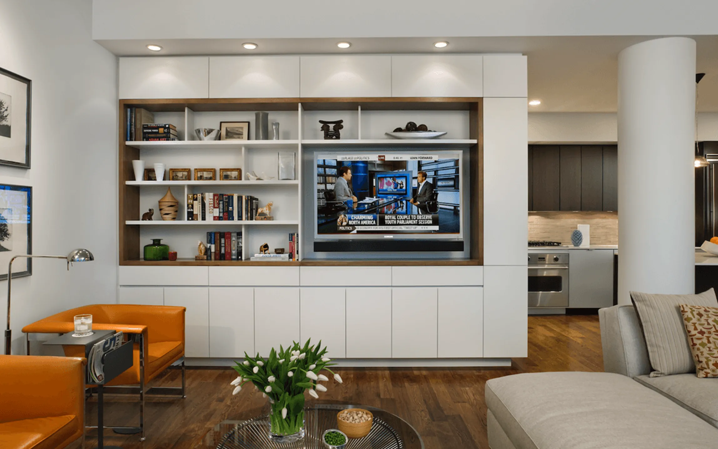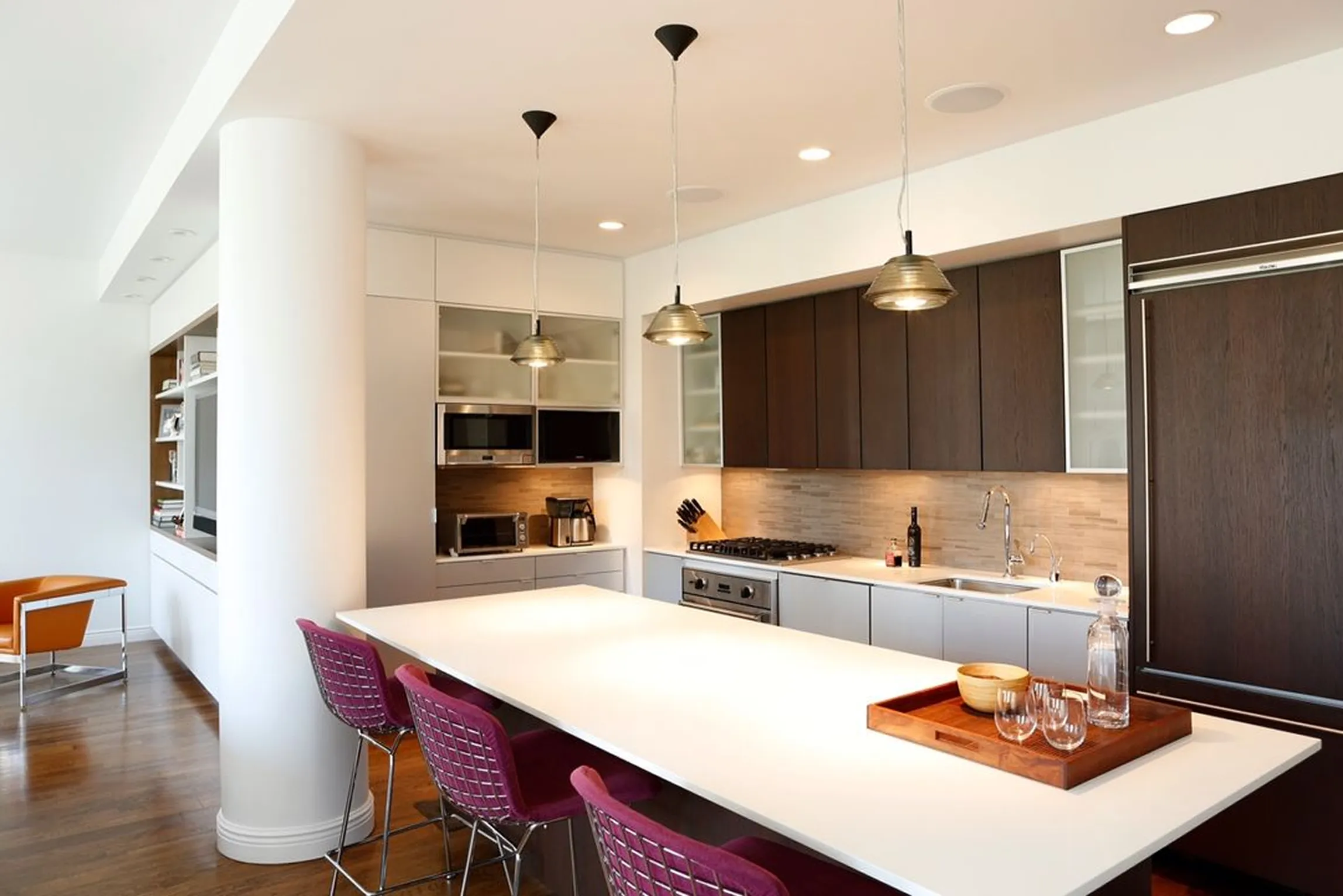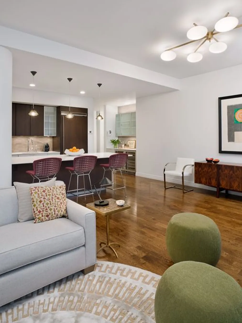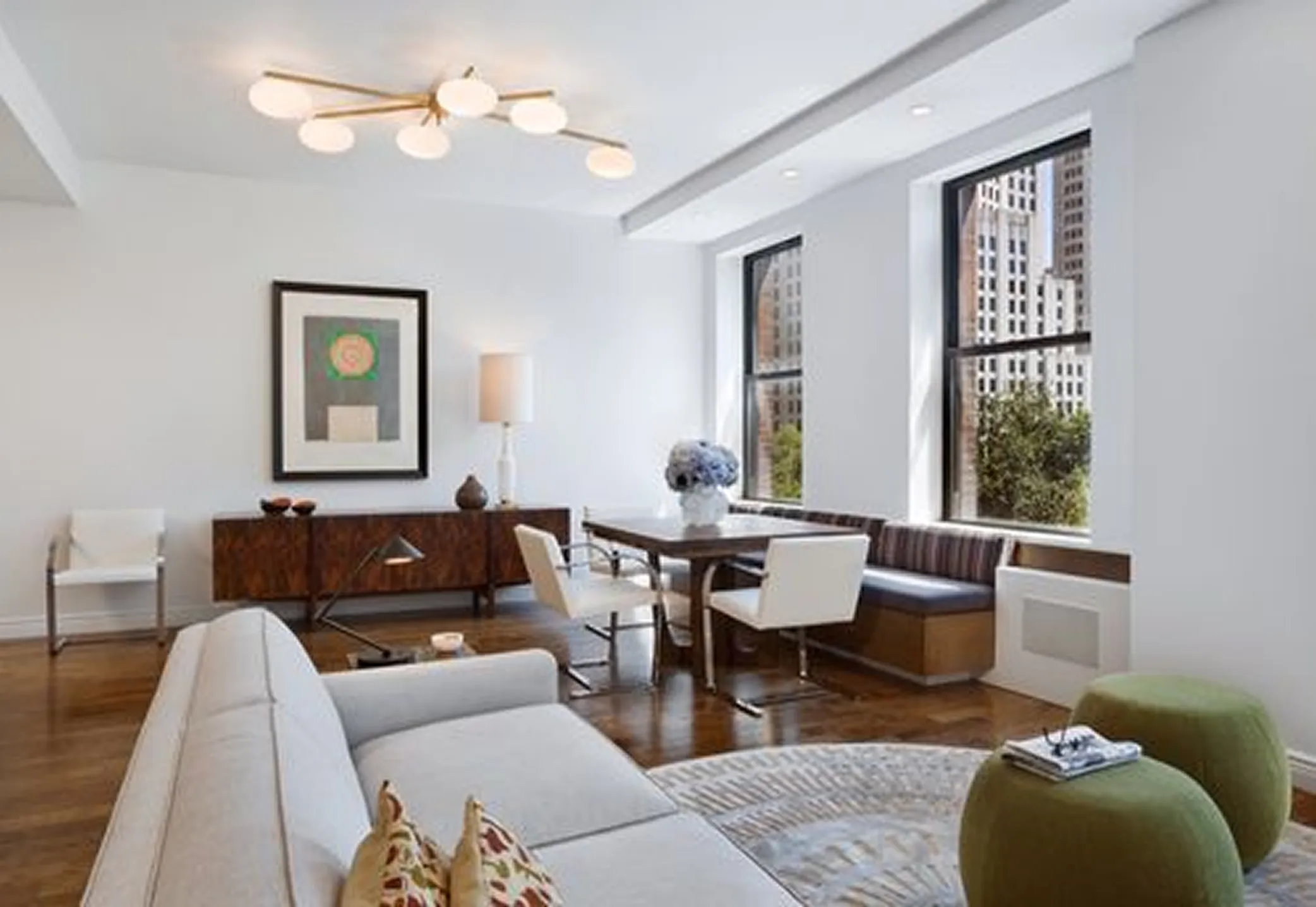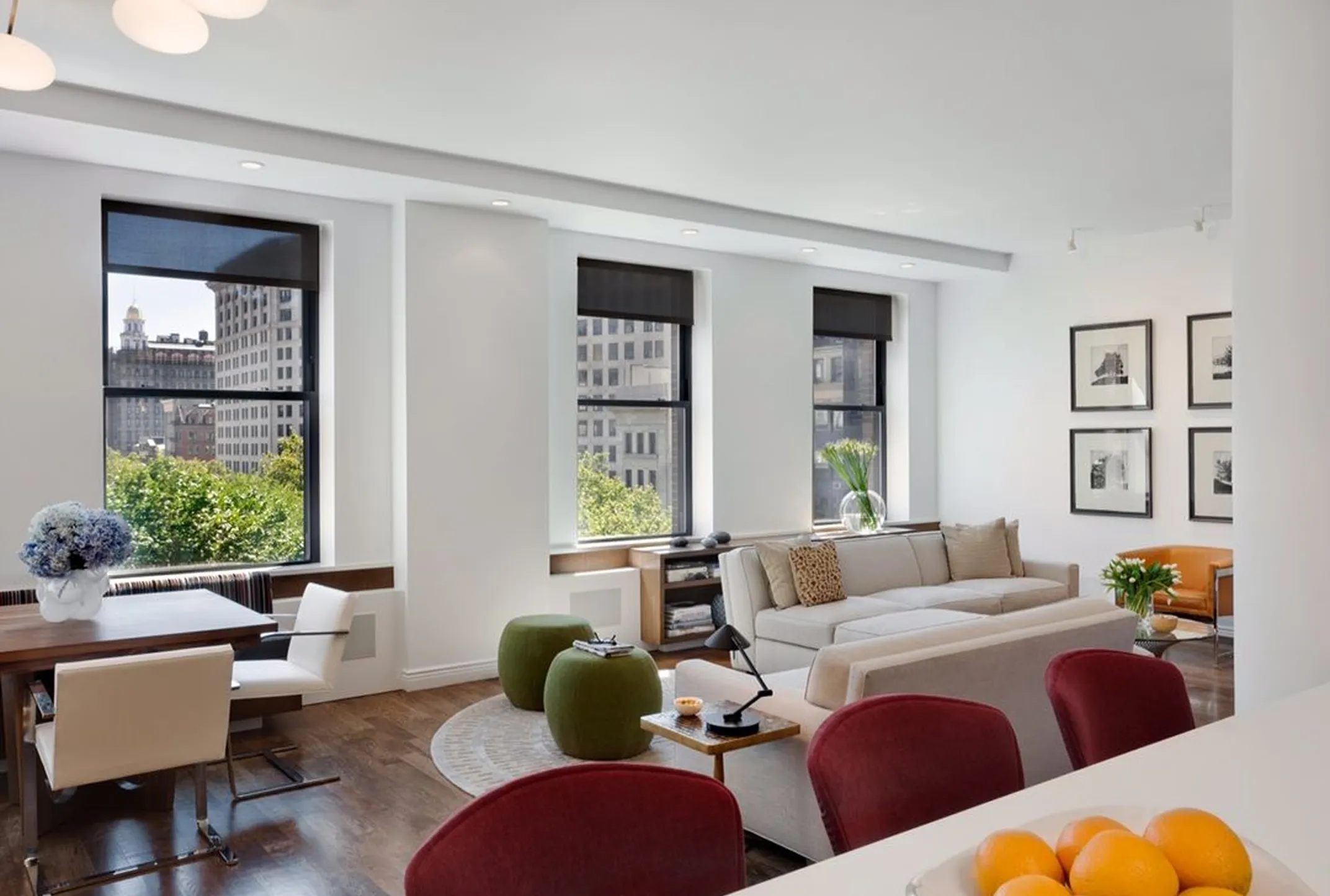 With postcard views of Madison Square Park and the Flatiron Building, this three-bedroom developer property was elevated through custom millwork and bespoke furnishing interventions.