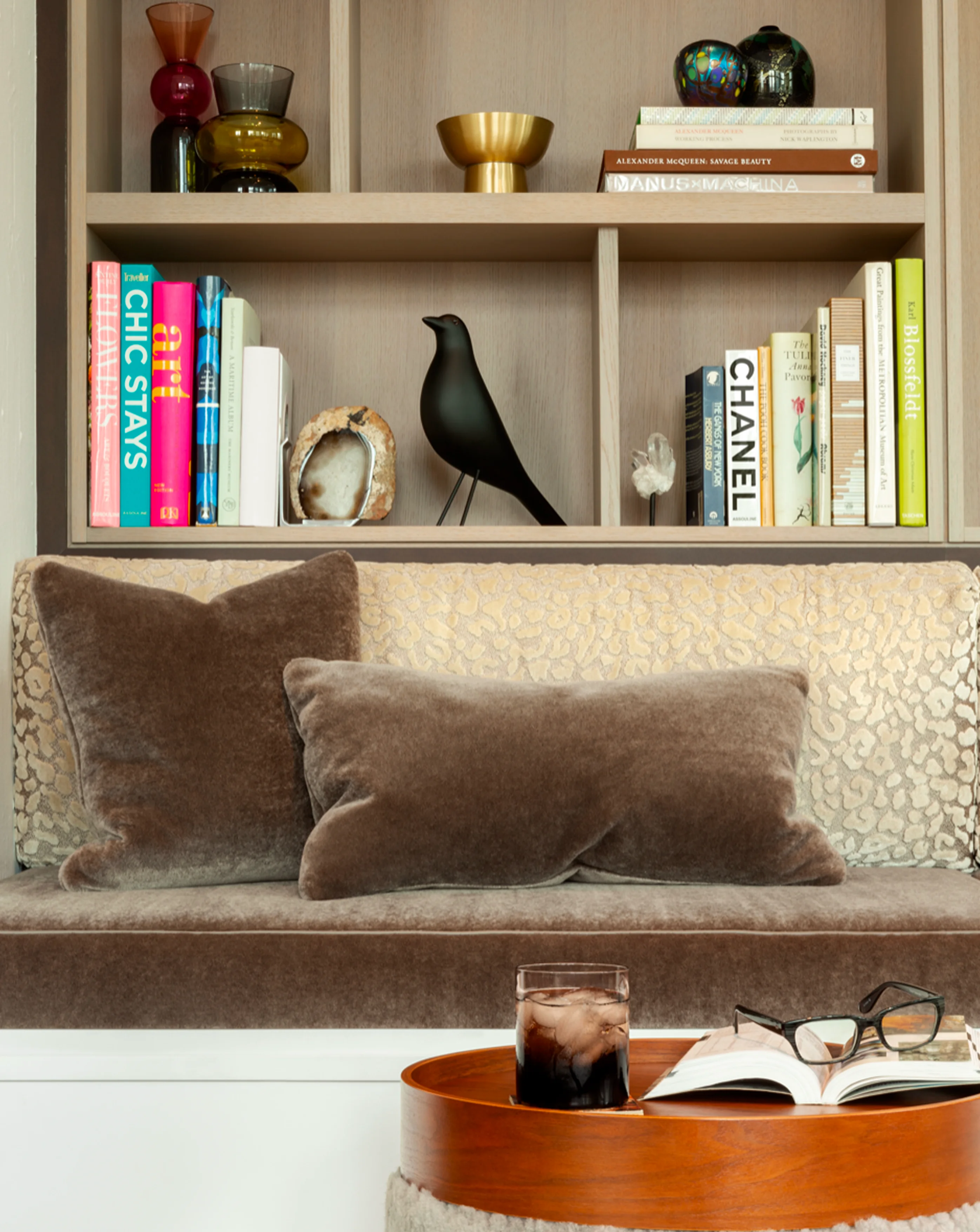 We used a combination of custom millwork and tailored furnishings to create structure and functionality of this busy home with custom closets, pet-safe fabrics and integrated work-from-home spaces.