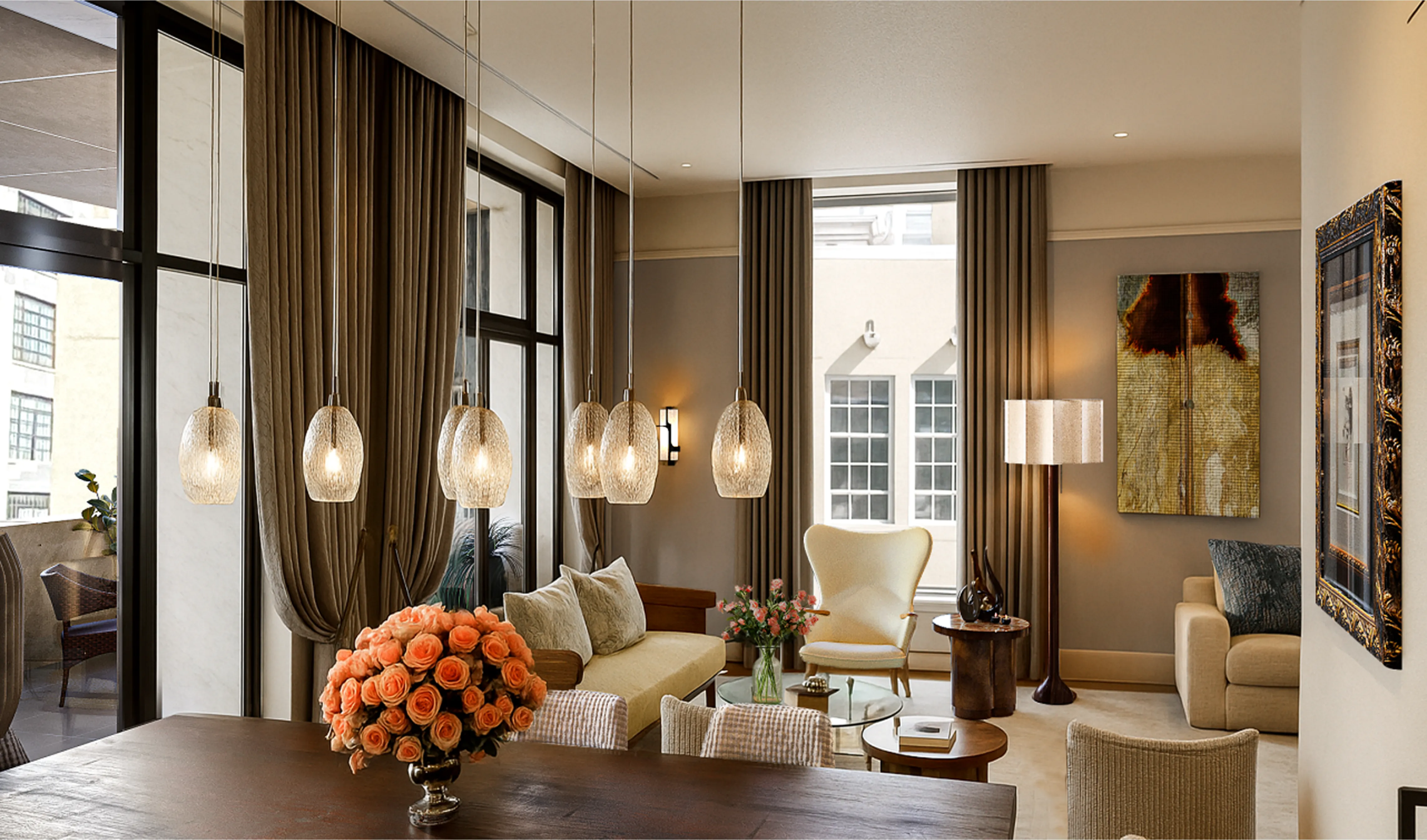 Luxe finishes and fabrics were layered with existing, vintage, and new furnishings to create a home aligned with the client’s aesthetic.